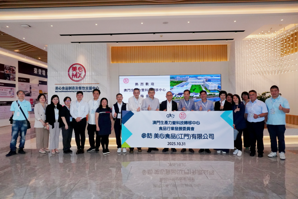 為進一步了解食品行業的發展趨勢、以及食品創新研發及生產技術的認知,生產力暨科技轉移中心於日前組織了食品業考察團,前往美心食品(江門)有限公司進行參觀交流。