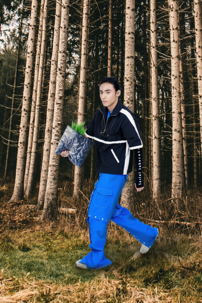 This collection’s theme is “Parasite”. In the forest of society, some like vines cling to towering trees, relying on their shelter and nutrients to reach the sunlight with ease; meanwhile, the trees that truly root in the soil and grow through wind and rain find their radiance obscured. Drawing on this metaphor, the collection employs exaggerated silhouettes, layered constructions, and splicing techniques to shape a stark structure of oppression and dependence, presenting the tension between “parasitism” and “self-reliance.” Through material relationships and calibrated shifts in proportion, it poses questions about social judgment and individual choice.